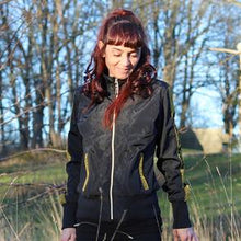 Sparkle from the inside out with our new Monroe jacket. Available in two colors, black with golden details and blue with silver details.